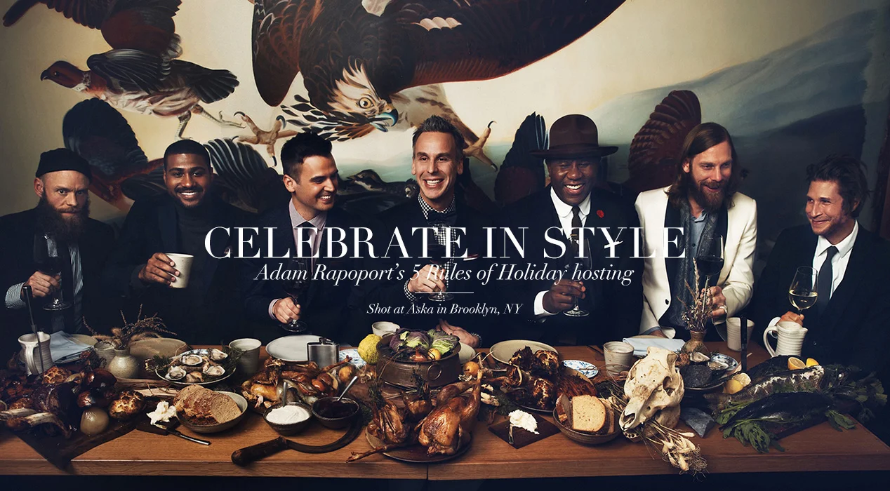 Five rules to follow for Holiday entertaining from Adam Rapoport. I was asked to spend an evening with Adam Rapoport, Tyler Thoreson & other well-respected influencers directing a story for how-to host, celebrate and generally live gentlemanly during the Holidays. Shot at the oroginal Aska location in Brooklyn, chef Frederik Berselius did not disappoint with the menu, while my crew weaved in and out of the very intimate space, capturing the moments and aesthetic of the Holidays and meriment that comes with great company.